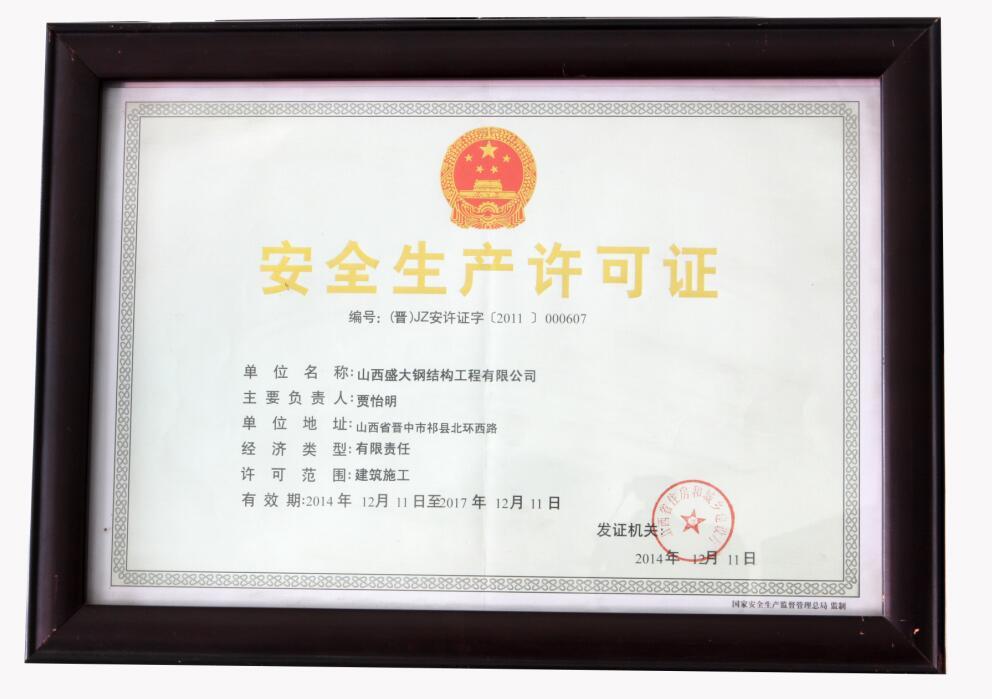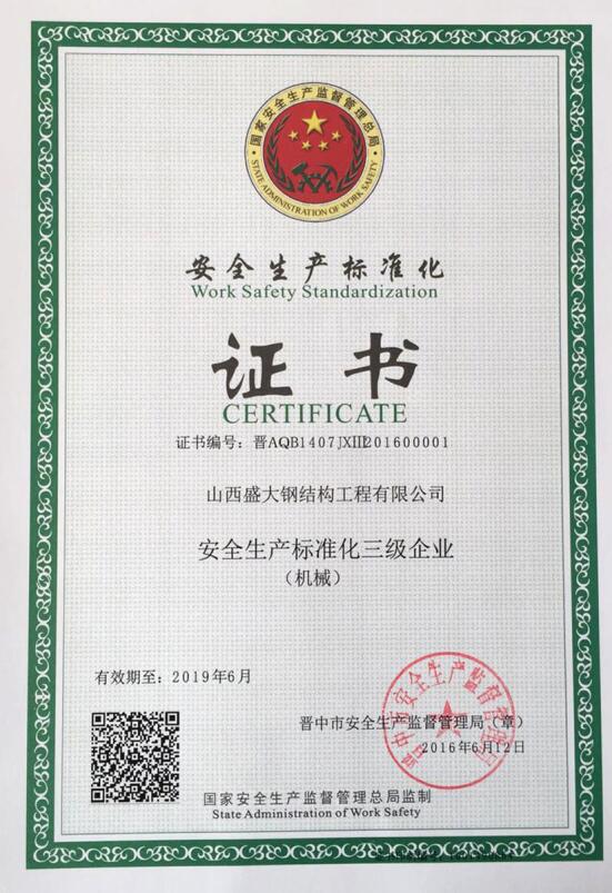 安全生產標準化證書