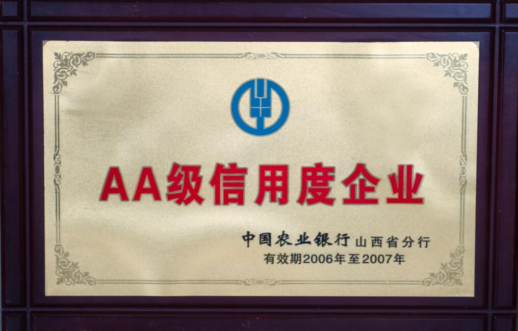 山西省質量信譽A級企業