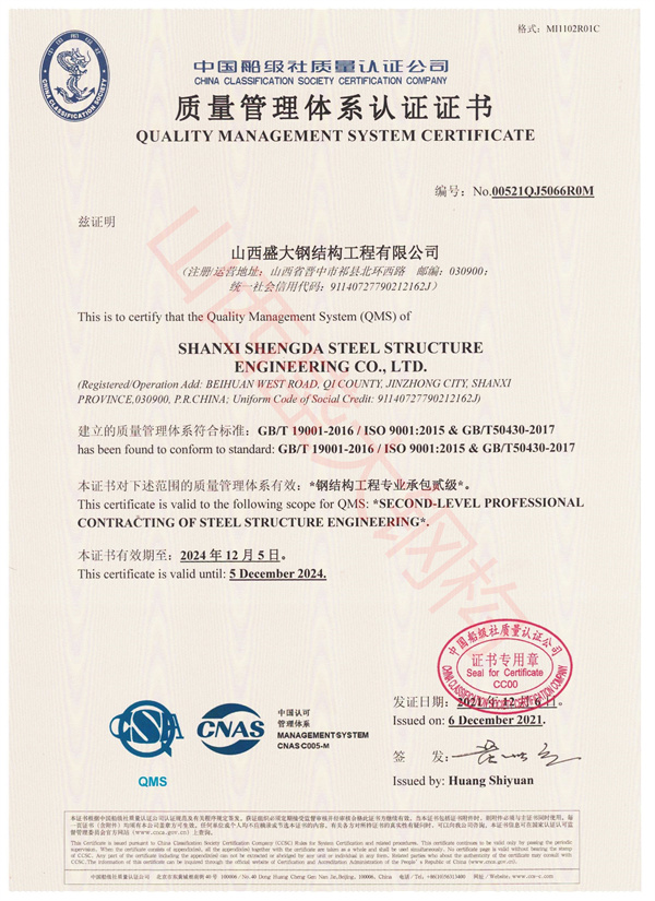 鋼結構工程承包質量認證